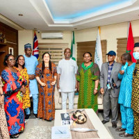 The British High Commissioner Catriona Laing hosted the Initiator of Eradication of malaria in Africa and Antarctica explorer, Prince Ned Nwoko, his wife and Global Ambassador, Regina Daniels and the Project coordinator, Chukwuebuka Anyaduba at her residence in Abuja.